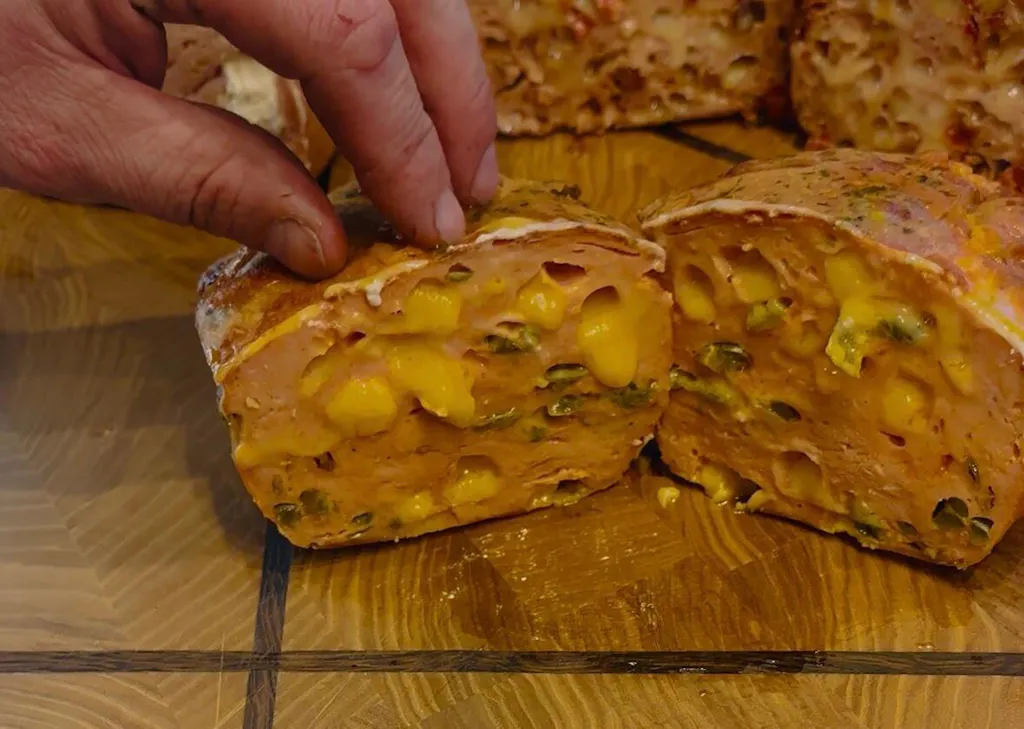 Der Geschmach ist der Wahnsinn... Ob warm als Mahlzeit oder kalt als Brotaufschnitt. Der Hammer....